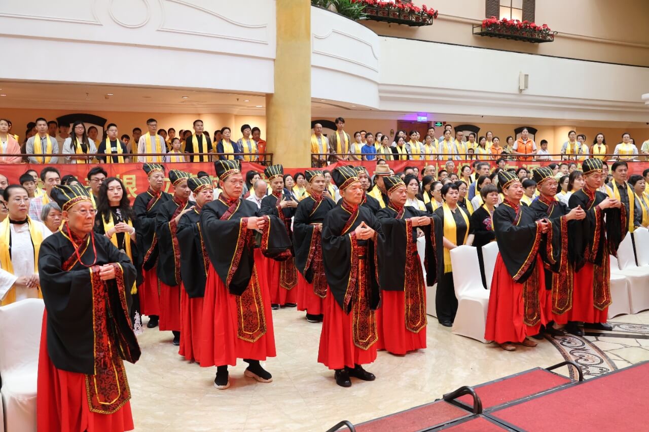 中场休息后,祭祀典礼正式拉开帷幕。在司礼官张礼义老师的主持下,主祭官林春鸿博士、读祝官俞雷飞会长及各位陪祭官身着汉服,神情庄重,依礼行事;现场来宾端身正意、心怀感恩,全程恭敬观礼,共同表达对轩辕黄帝及中华民族万姓先祖的缅怀与敬仰,祈愿国泰民安、风调雨顺、祖国统一、世界和平!